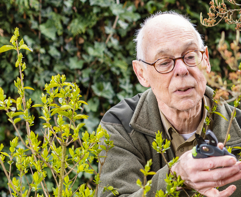 “Hovenier Ferdinand kwam met het idee om ons in de tuin te laten werken. Met hem had ik meteen een klik. Hij heeft veel interesse in hoe het is om beginnende dementie te hebben. Nu knappen we met de talentgroep tuinen op van mensen die dat zelf niet meer kunnen. Sommige tuinen zijn een oerwoud, daar moet veel gebeuren. Snoeien, wieden, vegen... fijn om met mijn handen bezig te zijn. Ik maak me nuttig en zie meteen resultaat van wat ik doe. En als het dan ook nog mooi weer is, is mijn dag helemaal goed.”
